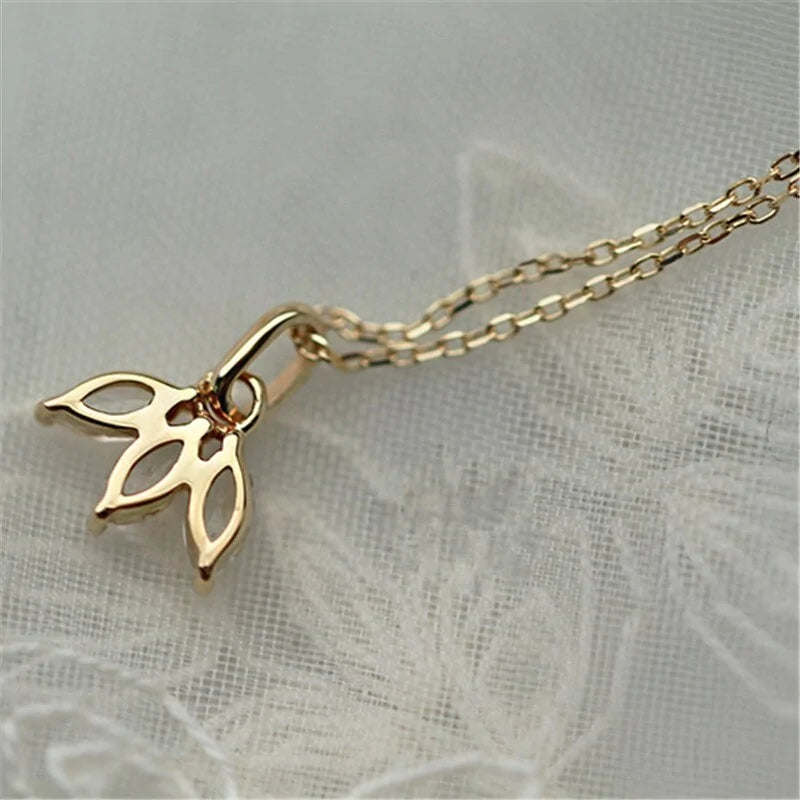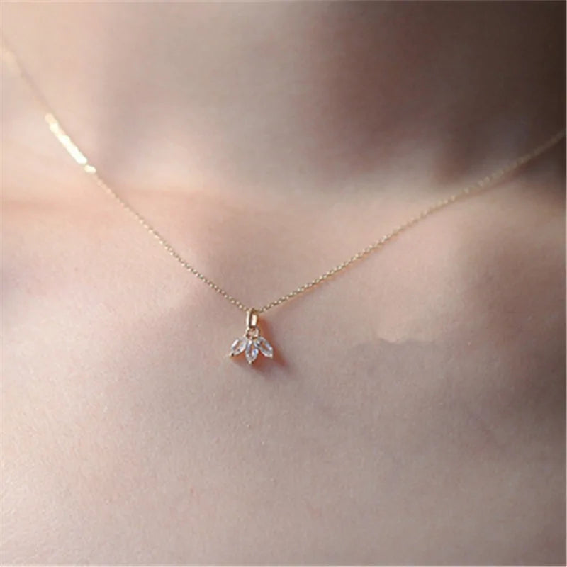 Inlaid Crystal French Clover Pendant with Clavicle Chain Necklace