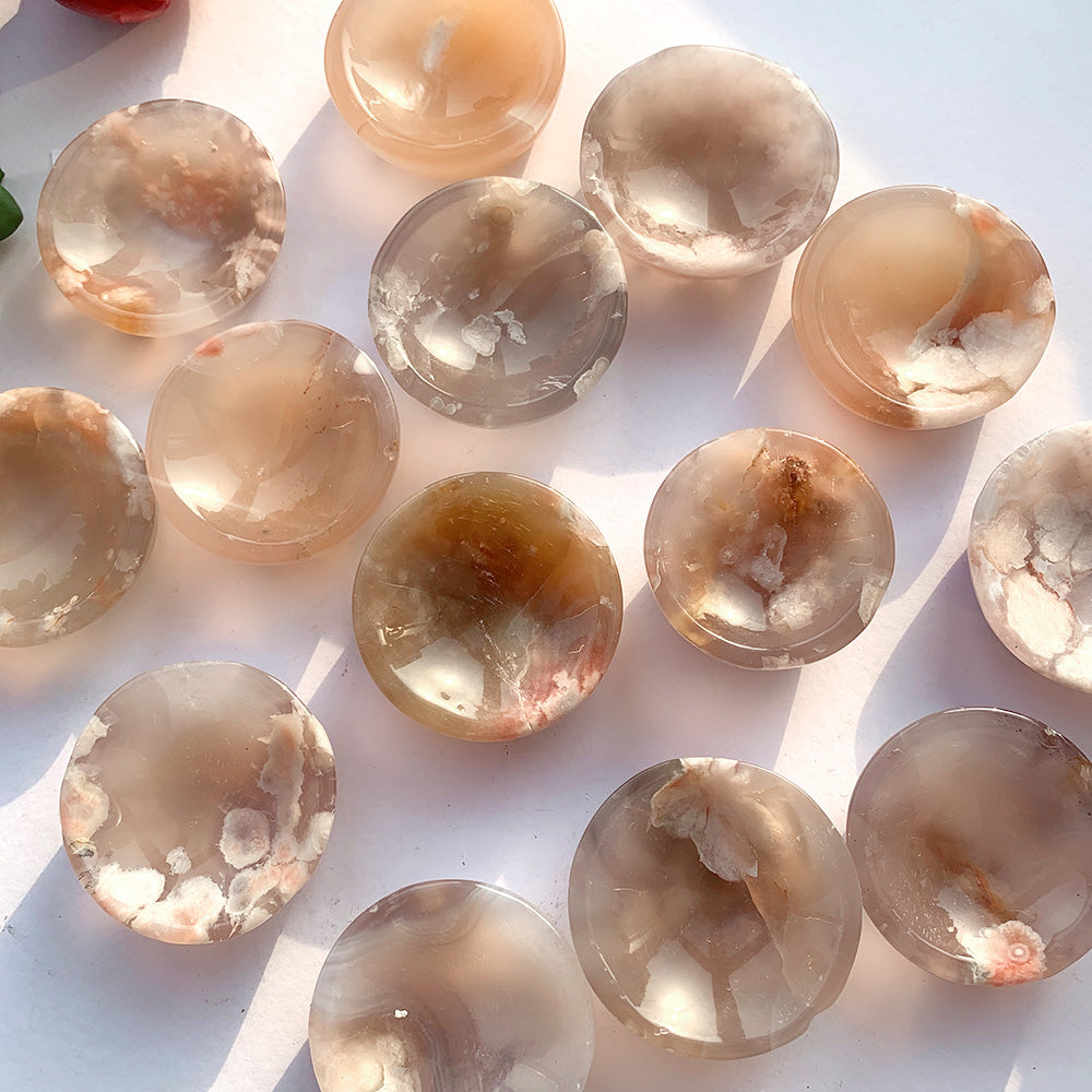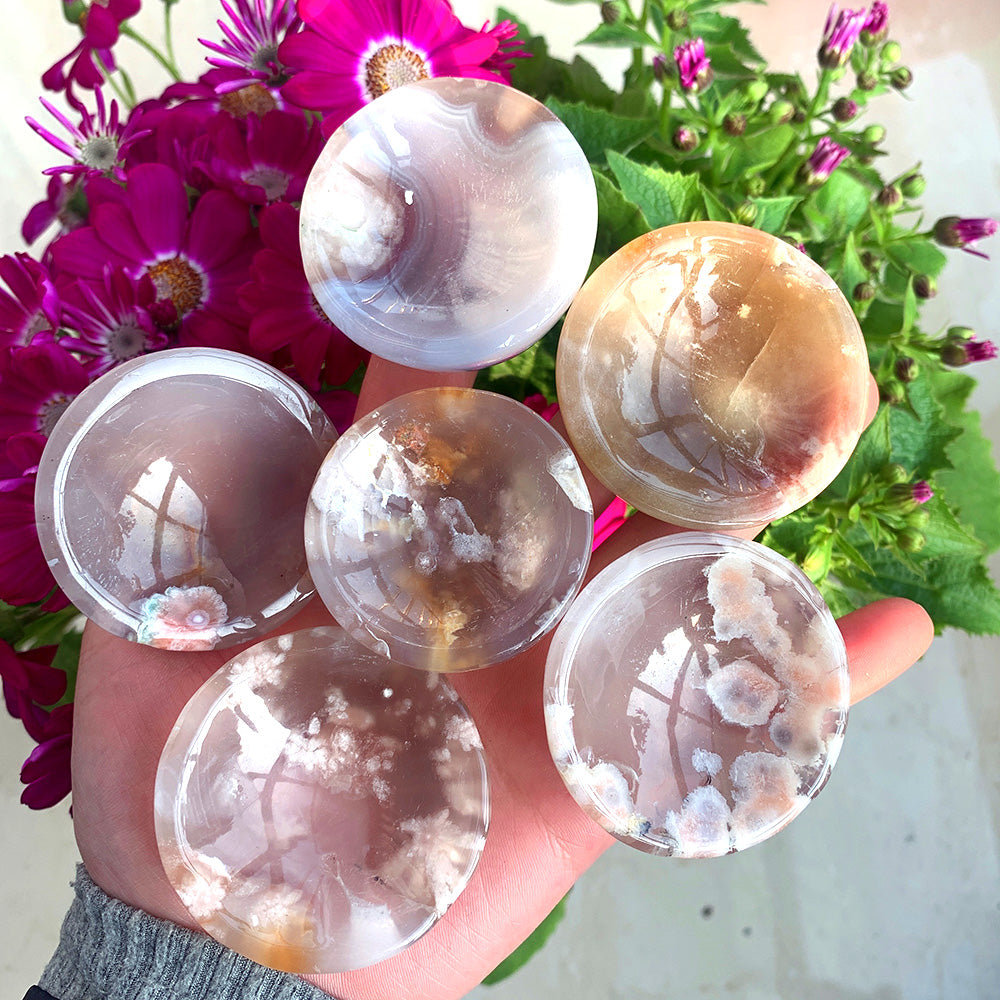 Agate is linked to bright ideas and positive thinking. This crystal symbolizes harmony and rebalance. This means you will feel an improvement in concentration and analytical abilities. The soothing power of agate allows you to feel calm and sage wherever you are. These mini bowls are great for alter spaces and holding small herbs, trinkets etc.